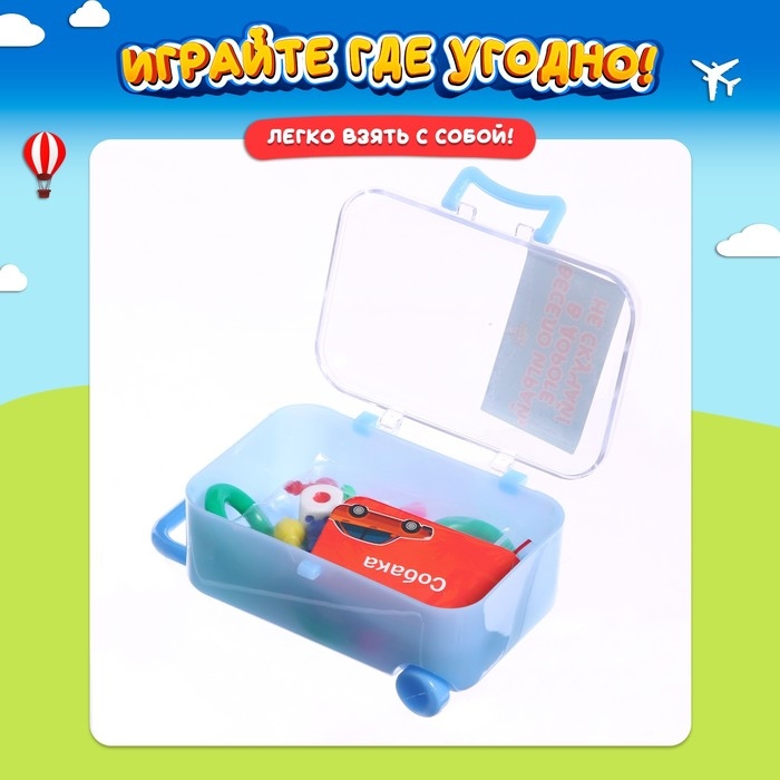 «Веселье в дороге» — компактная игра 3 в 1, которую удобно взять с собой в любое путешествие! Такой набор поможет развлечь маленького непоседу в поездке. Игра упакована в небольшой чемоданчик, который легко поместится в сумку. Отлично подойдёт для компании от 2 игроков.