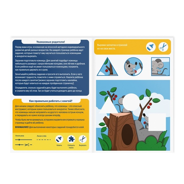 Перед вами книга-игра, основанная на японской методике интеллектуального развития детей. Благодаря ей ребёнок научится вырезать и собирать пазлы.