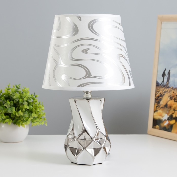 Настольная лампа "Эльга" Е14 40Вт бело-серебристый 20х20х34см RISALUX