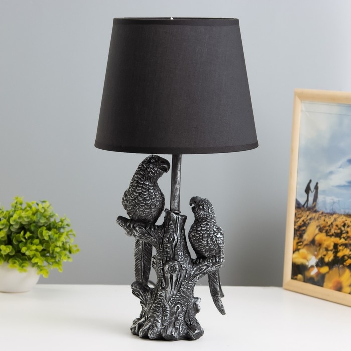 Настольная лампа "Попугаи" Е27 40Вт чёрный с серебряной патиной 22х22х43 см RISALUX