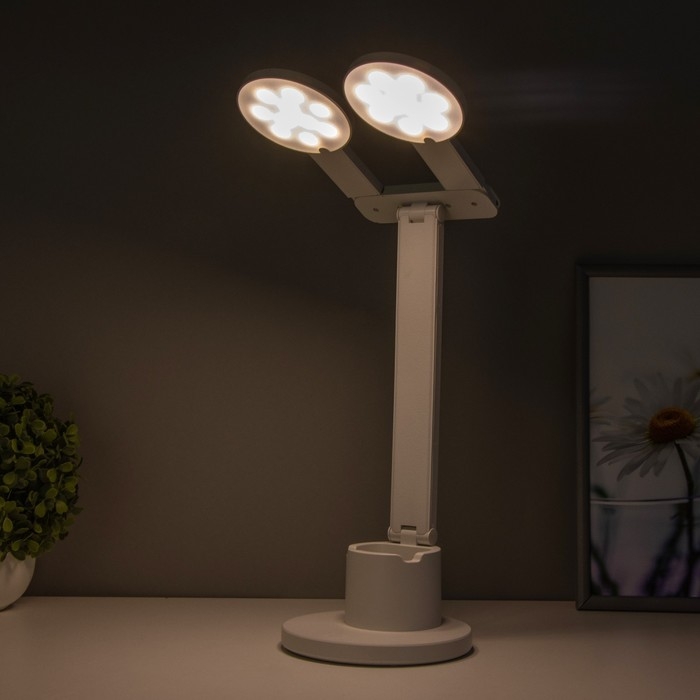 Настольная лампа сенсорная "Круги" с органайзером LED 20Вт АКБ USB белый 44х36х15 см RISALUX 78003