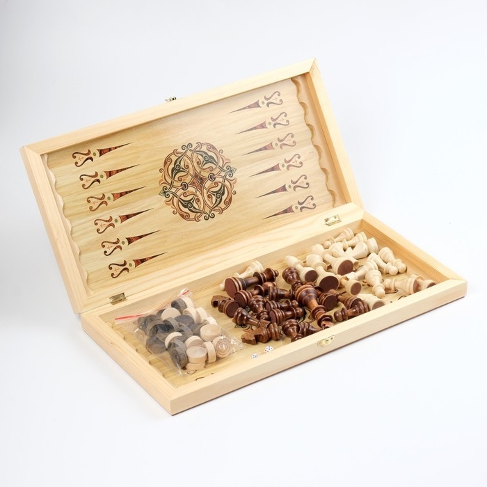 Настольные игры 3 в 1: шашки, шахматы, нарды, деревянные, поле 32 х 32 см
