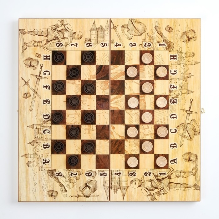 Настольные игры 3 в 1 "Рыцарь" шахматы, шашки, нарды, деревянные, большие, 50 х 50 см