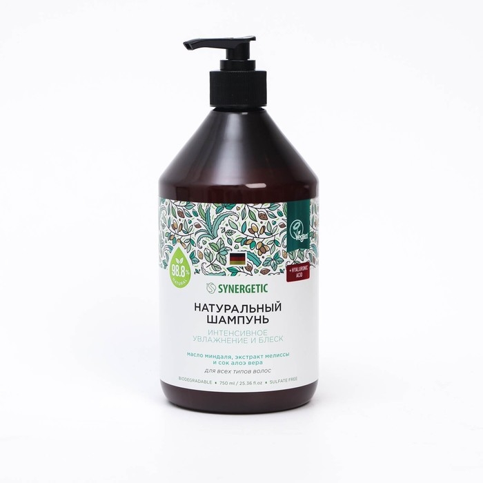 Натуральный бессульфатный шампунь SYNERGETIC Интенсивное увлажнение и блеск , 0,75 мл