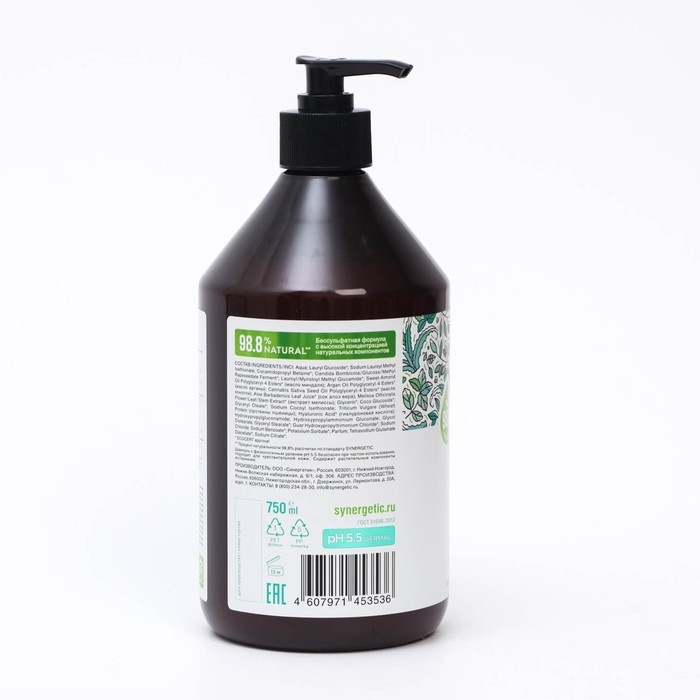 Шампунь и гель для душа мужской бессульфатный SYNERGETIC энергия и сила, 750 мл