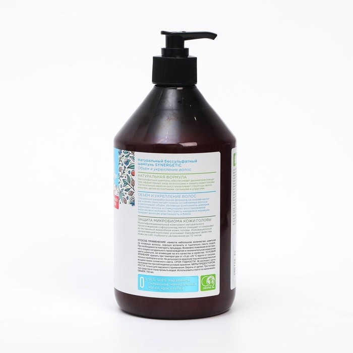 Натуральный бессульфатный шампунь SYNERGETIC Объём и укрепление волос , 0,75 мл