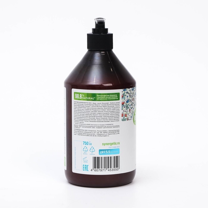 Шампунь и гель для душа мужской бессульфатный SYNERGETIC энергия и сила, 750 мл