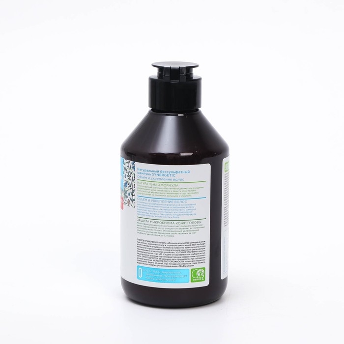 Натуральный бессульфатный шампунь SYNERGETIC, объём и укрепление волос, 250 мл