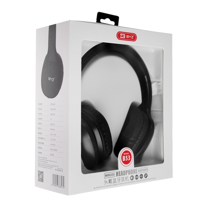 Наушники BYZ B53, беспроводные, полноразмерные, ВТ 5.0, 400 мАч, чёрные