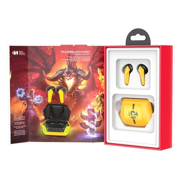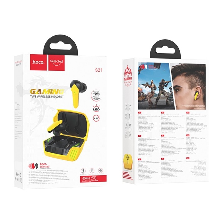 Наушники Hoco S21 TWS, беспроводные, вакуумные, BT5.0, 40/320 мАч, микрофон, черно-желтые
