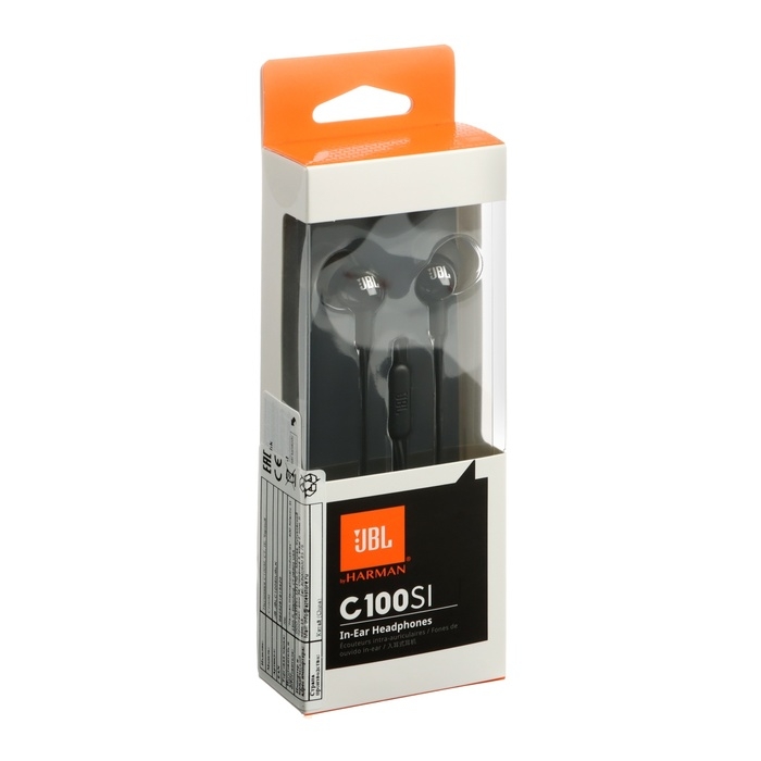 Наушники JBL С100SI, вакуумные, микрофон, 100дБ, 16 Ом, 3.5 мм, 1.2 м, черные
