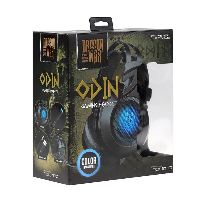 Наушники Qumo Odin, игровые, микрофон, 3.5+USB, 2.2м, подсветка, чёрные