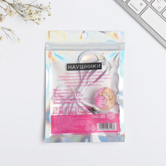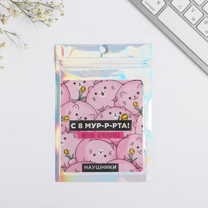 Наушники вакуумные в пакете «Meow-вечеринка», с микрофоном, 10 х 15 см