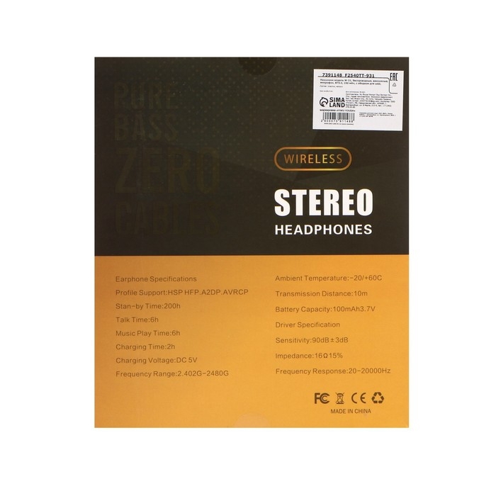 Наушники W-21, беспроводные, вакуумные, микрофон, BT5.0, 150 мАч, с ободком для шеи, черные