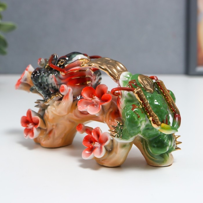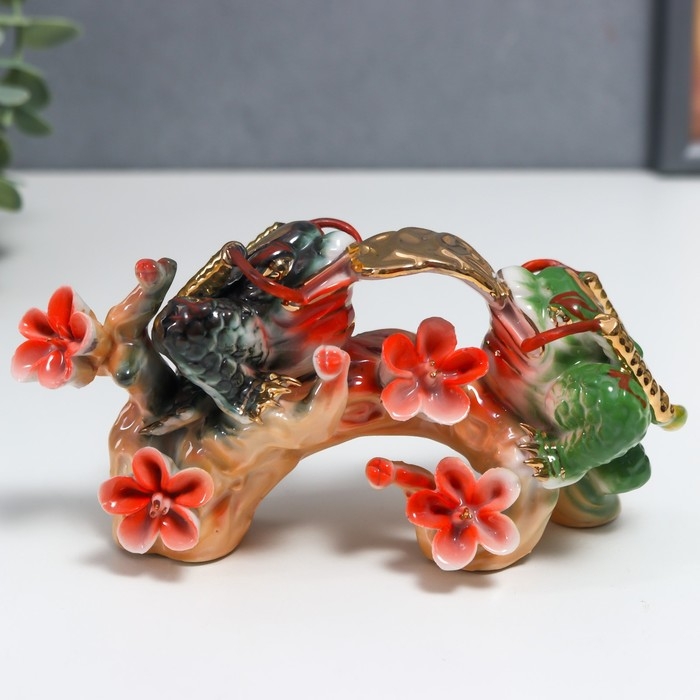 Нэцке керамика "Две жабы на ветке сакуры" 8х6,5х16 см