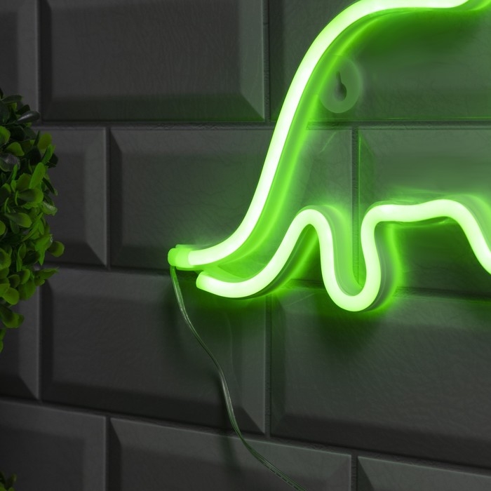 Неоновая вывеска «Динозавр» 24 × 24 см, батарейки ААх3 (не в комплекте), USB, свечение зелёное