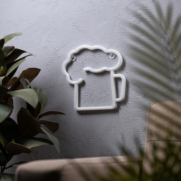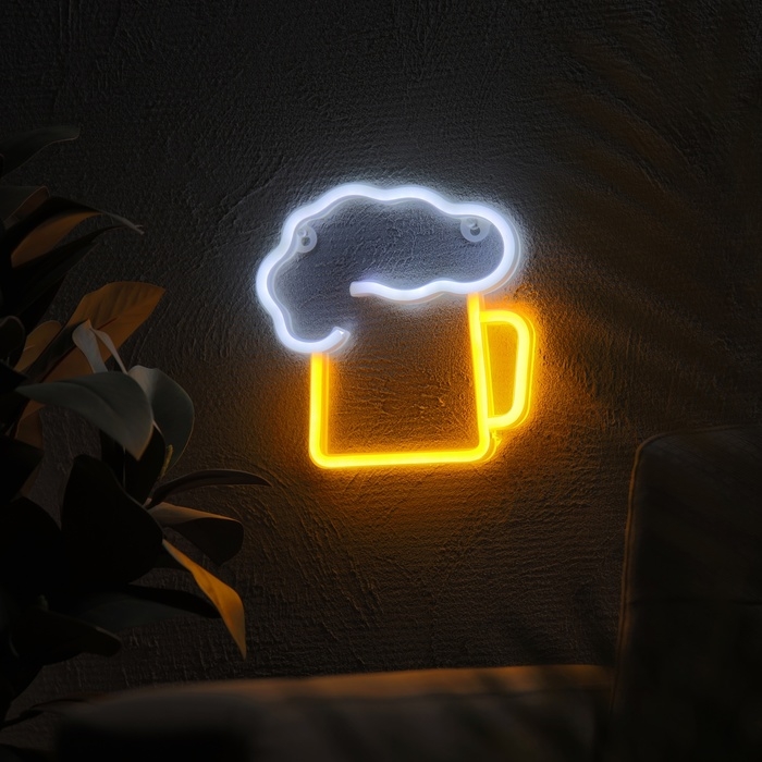 Неоновая вывеска «Кружка пенного» 22 x 22 см, батарейки AAx3 (нет в комплекте) + USB, свечение желто-белое