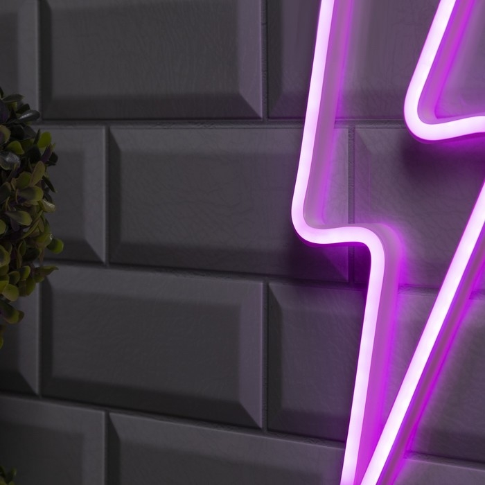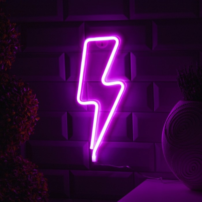 Неоновая вывеска «Молния» 13 × 33.5 см, батарейки ААх3 (не в комплекте), USB, свечение розовое