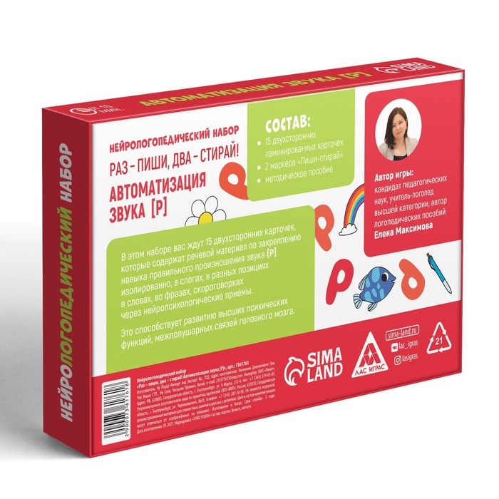 Нейрологопедический набор «Раз - пиши, два - стирай. Автоматизация звука [Р]», 15 карт, 2 маркера, 4+