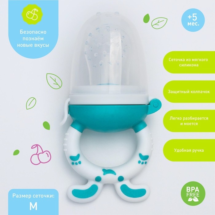 Изделие для прикорма (ниблер) пригодится в период, когда ребёнок переходит с кашки и молока на твёрдую пищу. Приспособление разовьёт у крохи жевательные навыки. Также предмет будет безопасно массировать дёсны во время прорезывания зубов.
