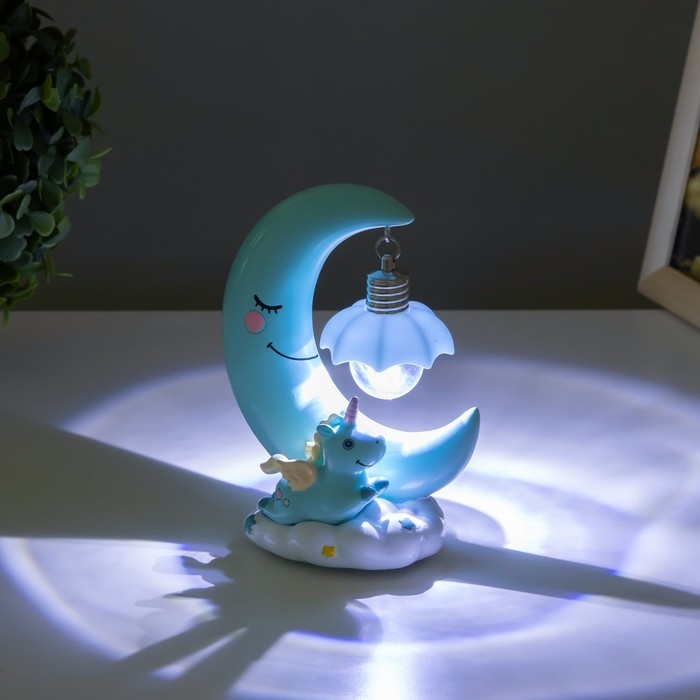Ночник "Единорог на луне" LED 1вт 6000K от батареек голубой 15х11 см RISALUX