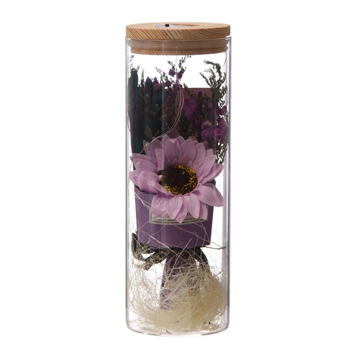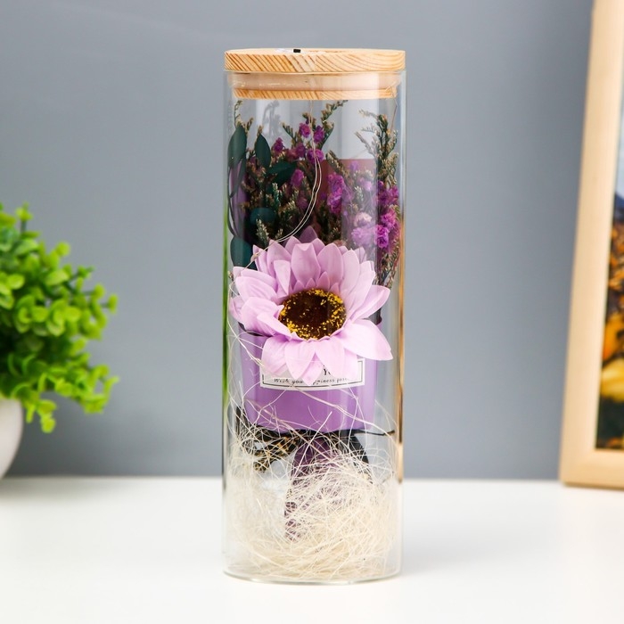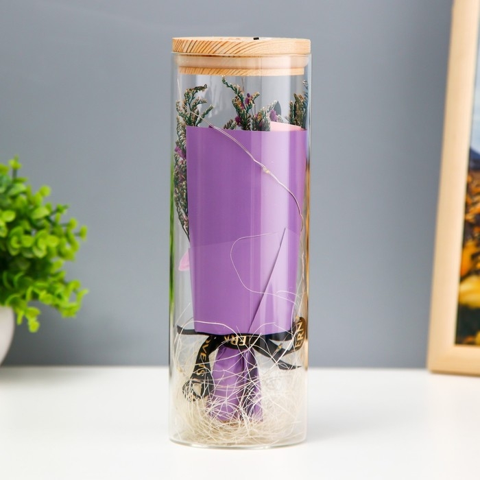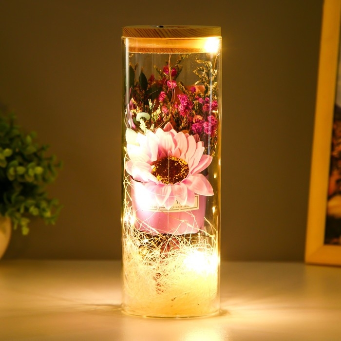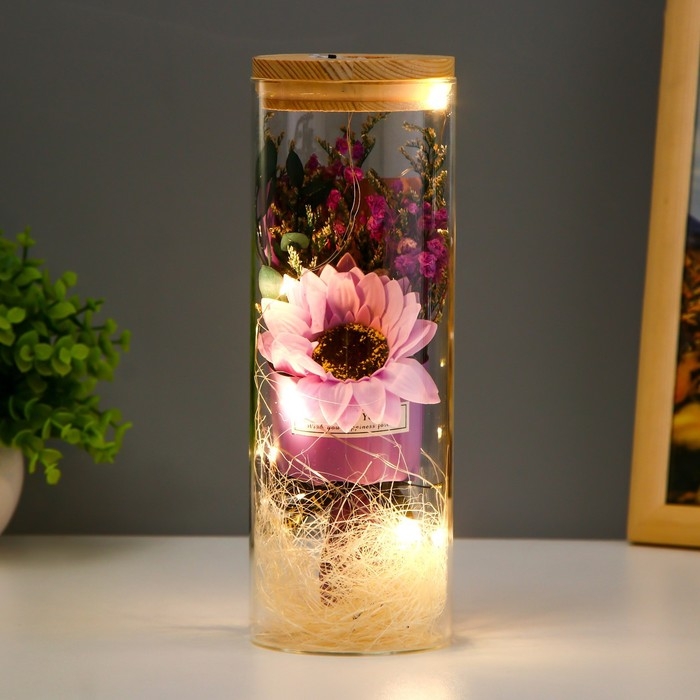 Ночник колба "Букет с розовым цветком" LED от батареек LR1130 8х8х23 см RISALUX
