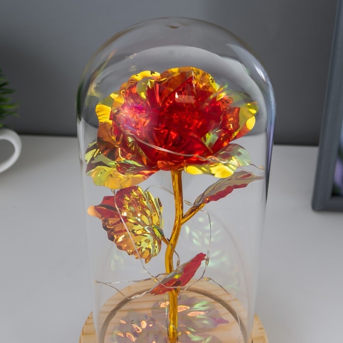 Великолепный ночник и подарок в одном аксессуаре. Этот вечный цветок не вянет и не требует особого ухода. Такие композиции часто применяют во флористике, упаковке подарков и дизайне интерьеров.