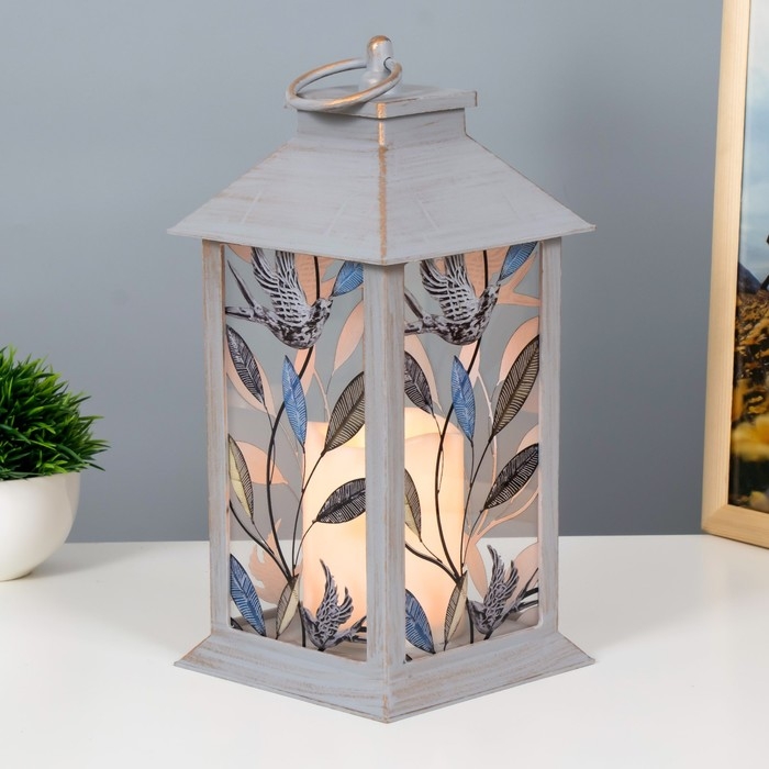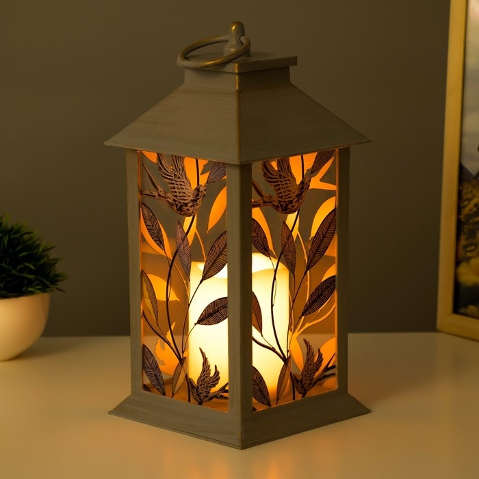 Ночник "Птичка на ветке" LED от батареек 3хААА серый с золотой патиной 14х14х29,5 см RISALUX 798638