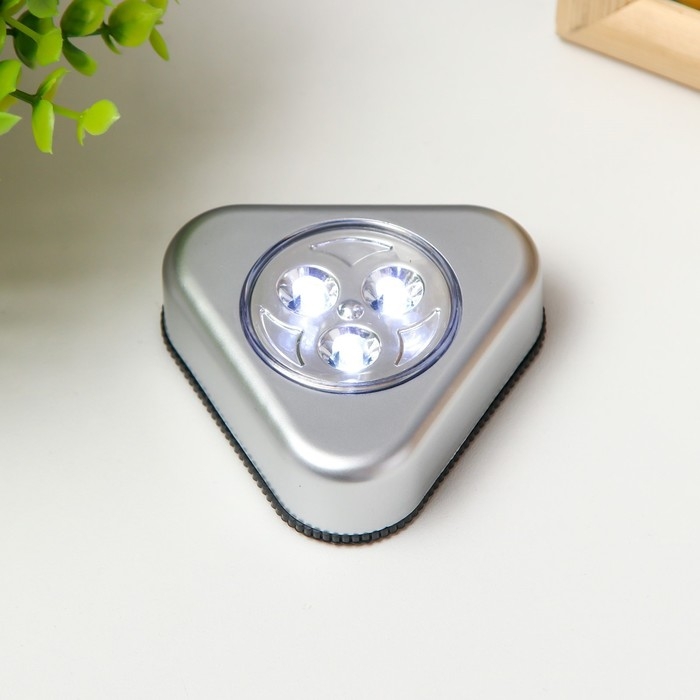 Ночник-пушлайт "Треугольник" 3хLED, 3ААА серый 6,5х6,5х2,5 см RISALUX