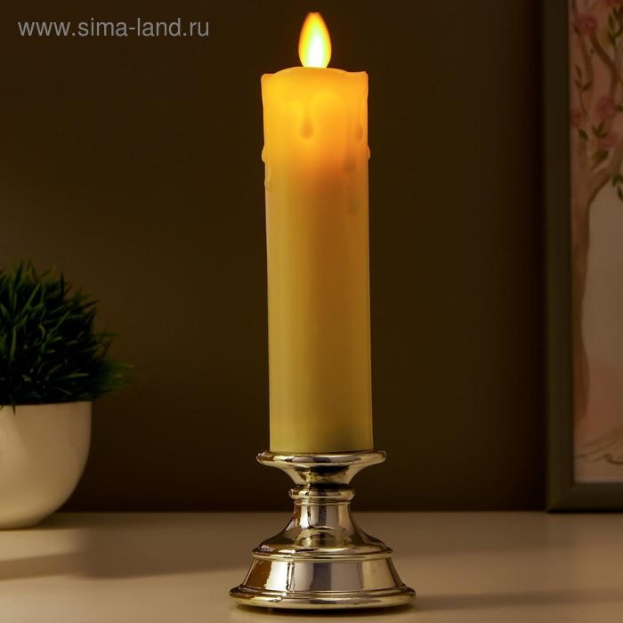 Ночник с эффектом живого пламени "Свеча большая" LED от батареек 2xААА серебро 7х7х21 см RISALUX 51