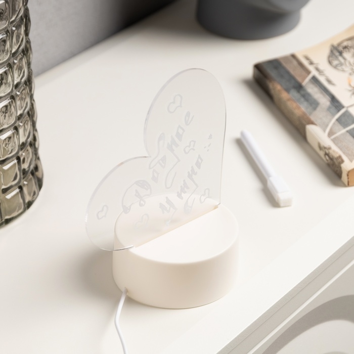 Ночник с маркером для заметок, 12.5x16.5x9.5 см, 6 LED, USB, сердце, свечение тёплое белое