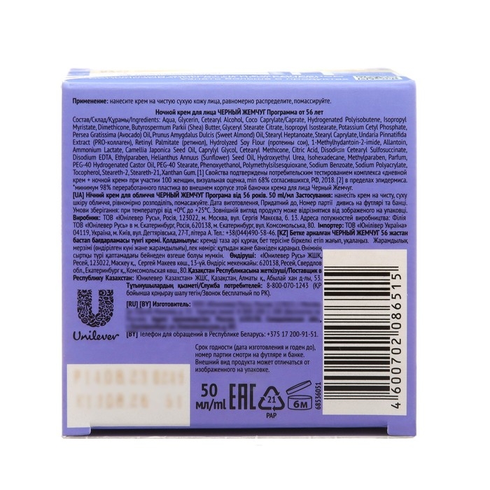 Ночной крем для лица Чёрный жемчуг «Самоомоложение» от 56 лет, 50 мл