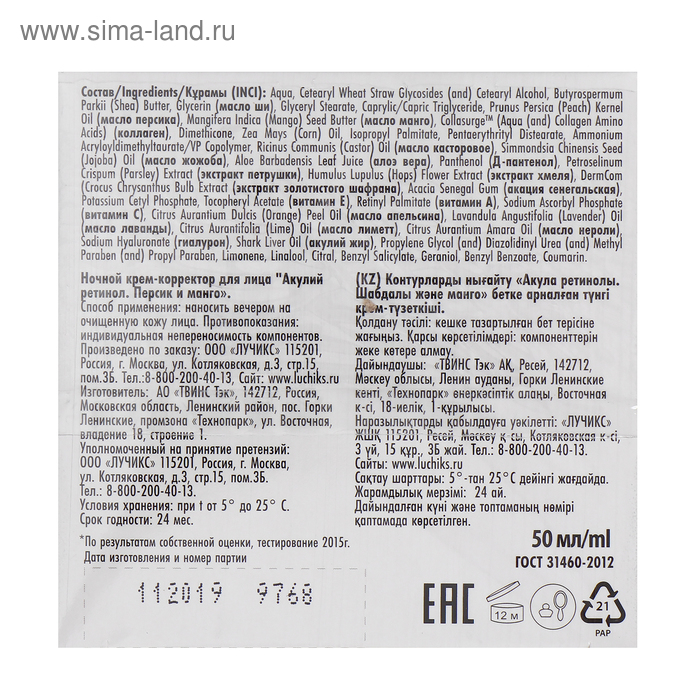 Ночной крем-корректор для лица «Акулья сила», акулий ретинол, персик и манго, 50 мл