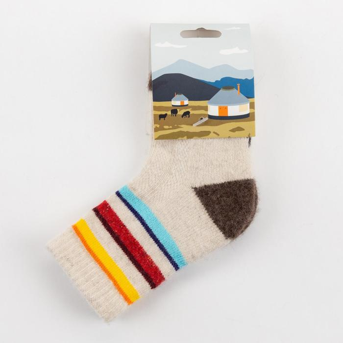 Носки детские из монгольской шерсти "Цветные полосы", цвет белый, размер 14-16 см (3)