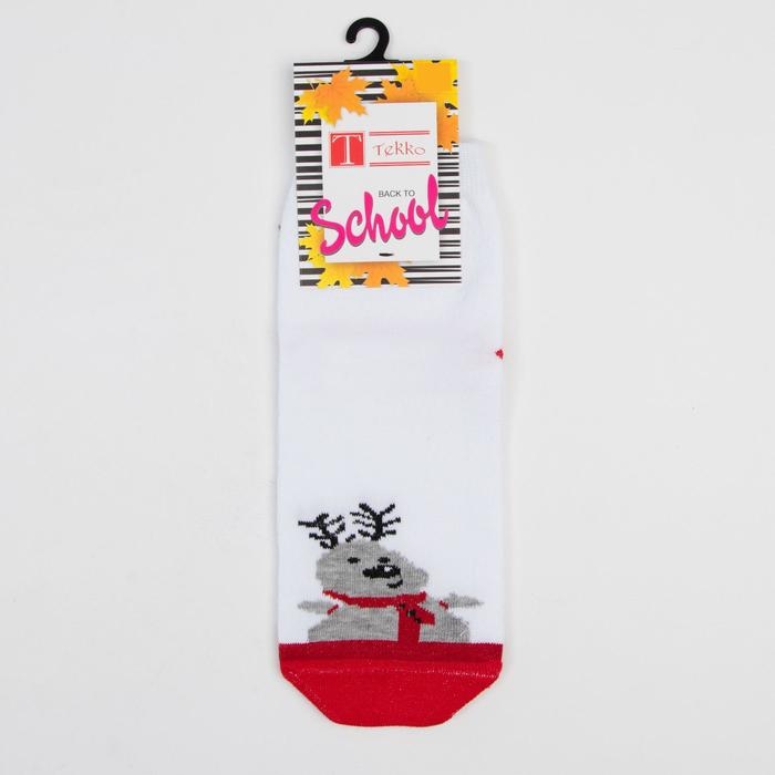 Носки детские «Олень» цвет белый/красный, размер 20-22