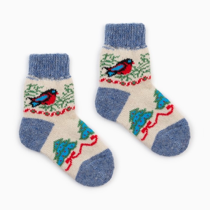 Носки детские шерстяные «Снегирь в лесу», цвет белый, размер 12