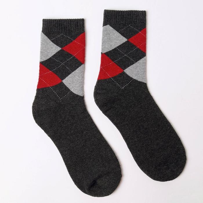 Носки мужские махровые, цвет тёмно-серый, размер 27-29