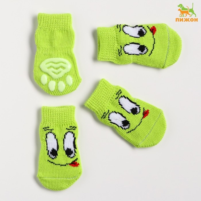 Носки нескользящие "Улыбка", размер М (3/4 * 7,5 см), набор 4 шт, зеленые