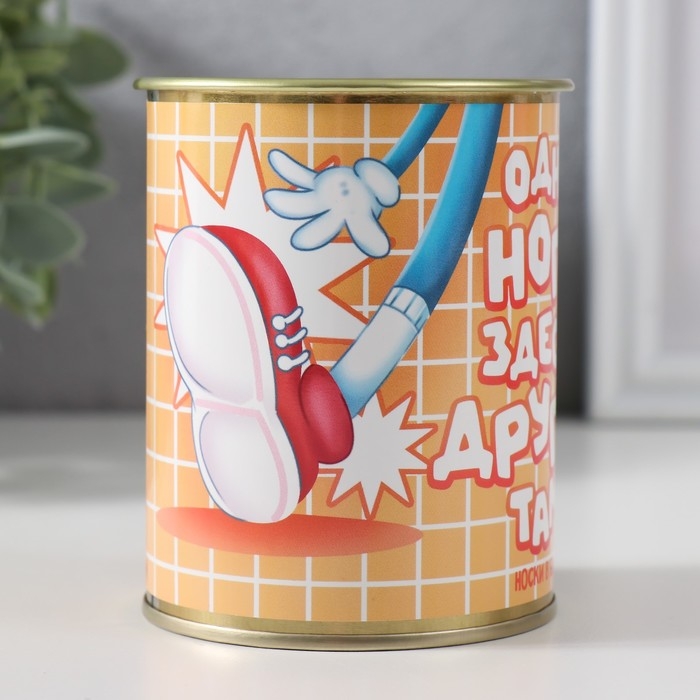 Носки с принтом в банке "Одна нога здесь, другая там!" (внутри носки мужские)