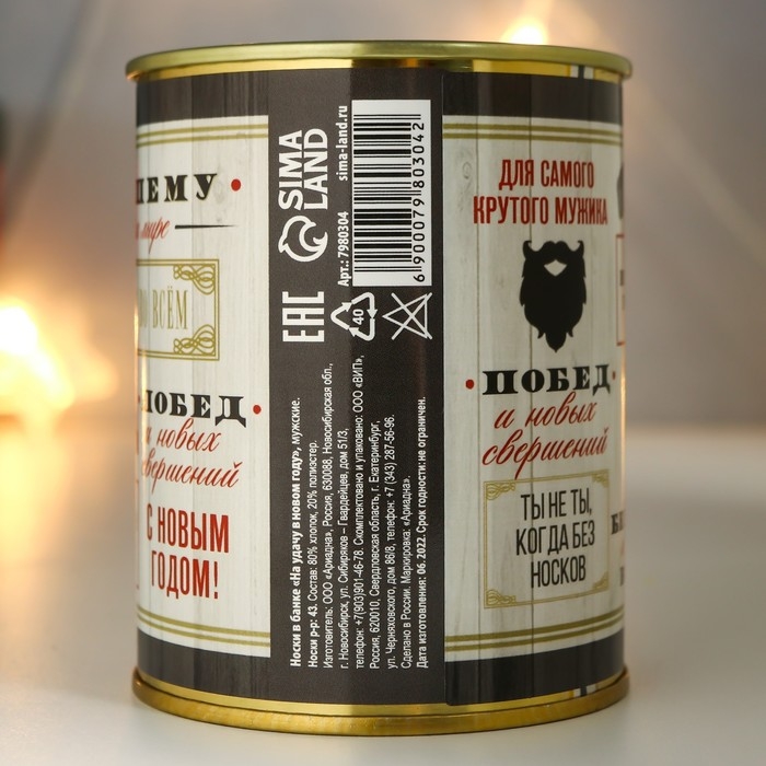 Носки в банке "На удачу в Новом году" (внутри носки мужские, цвет чёрный)