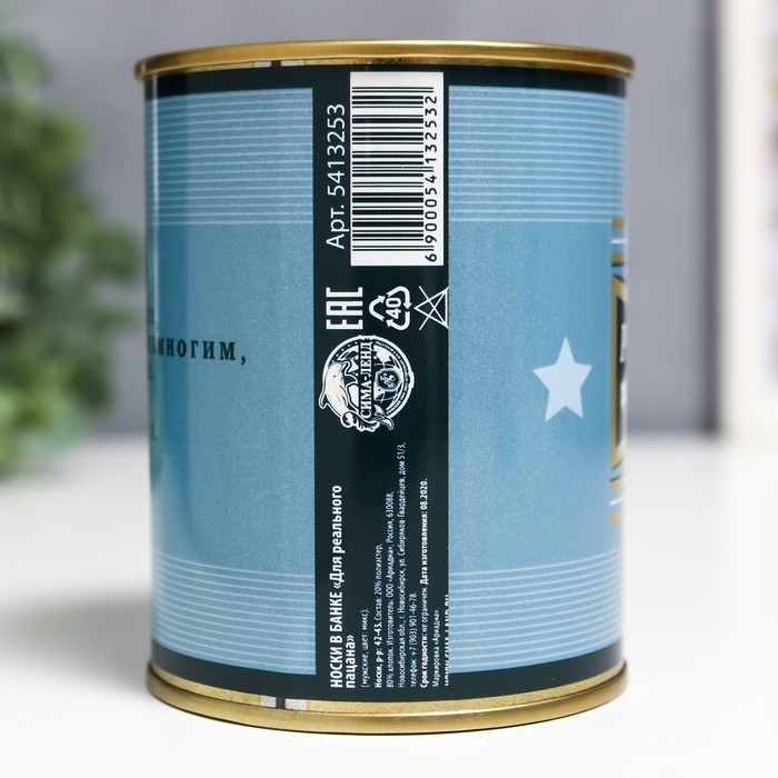 Носки в банке "Реального пацана" (внутри носки мужские, цвет чёрный)