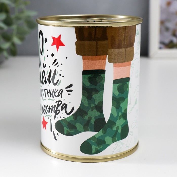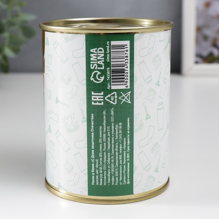 Носки в банке "С Днем защитника Отечества" (внутри носки мужские, цвет чёрный)