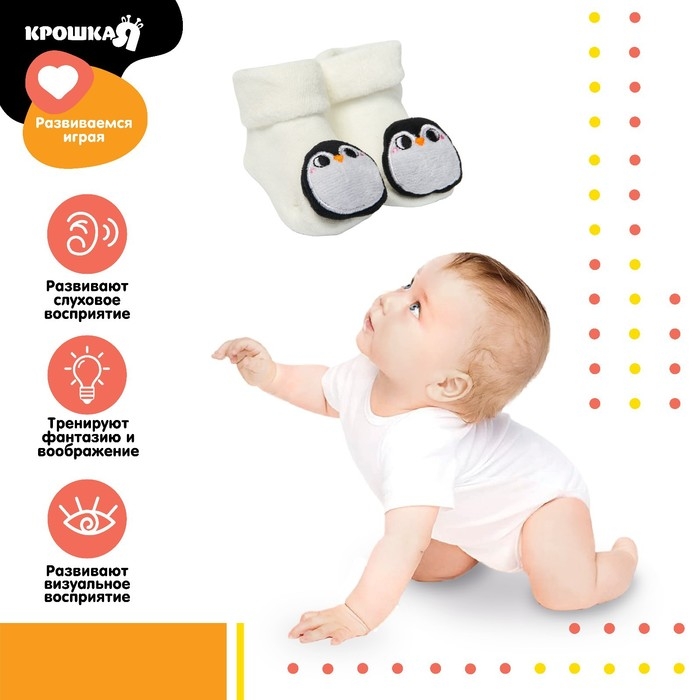 Носочки для малышей «Пингвинчики», с погремушкой, Крошка Я