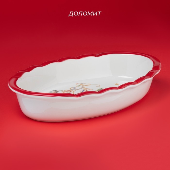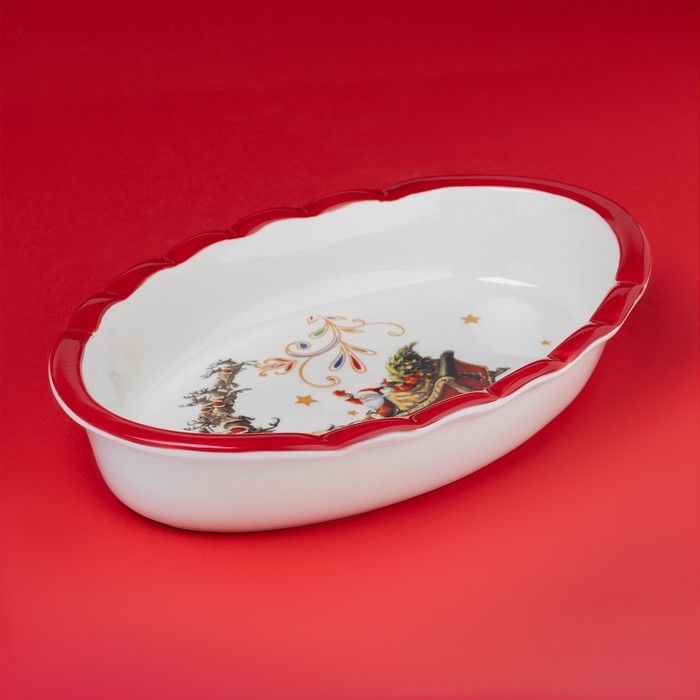 Новгодняя форма для запекания Доляна «Сани Деда Мороза», керамика, 28×18×5 см, цвет белый