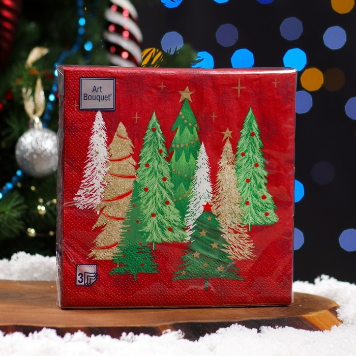 Новогодние салфетки бумажные Art Bouquet «Ели на красном», 3 слоя, 33х33, 20 шт