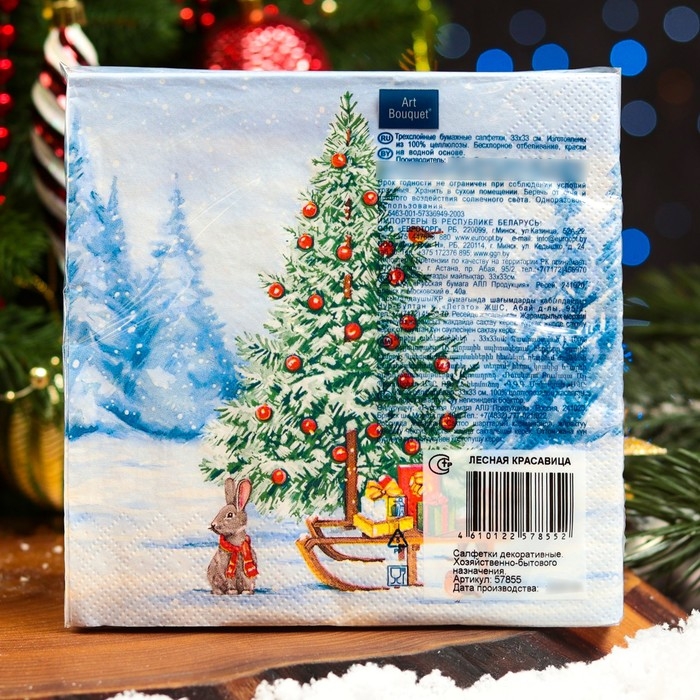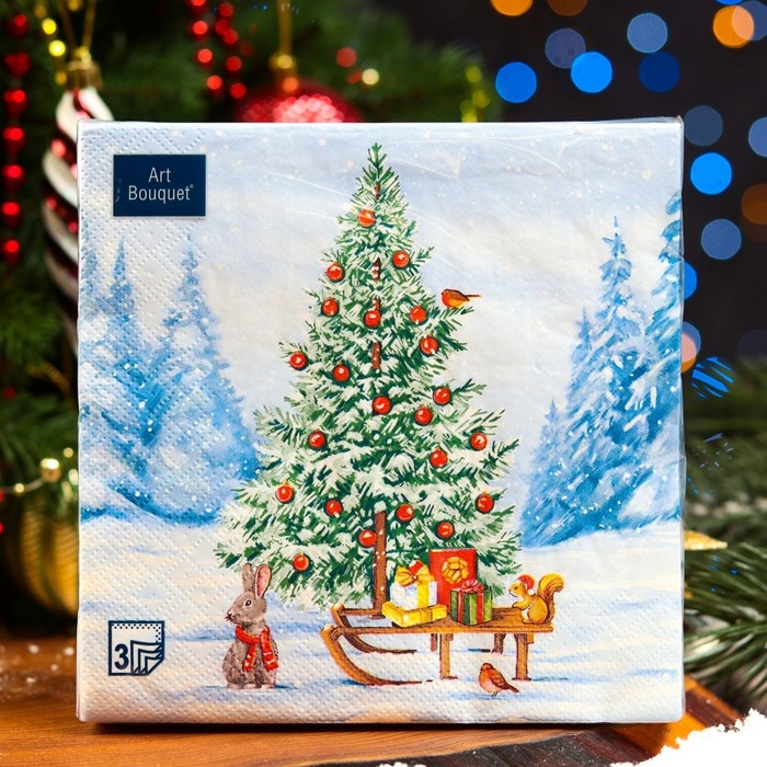 Новогодние салфетки бумажные Art Bouquet «Лесная красавица», 3 слоя, 33х33, 20 шт.