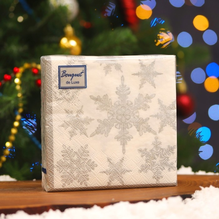 Новогодние салфетки бумажные Bouquet de Luxe «Снегопад Серебро», 3 слоя, 24х24, 25 шт.