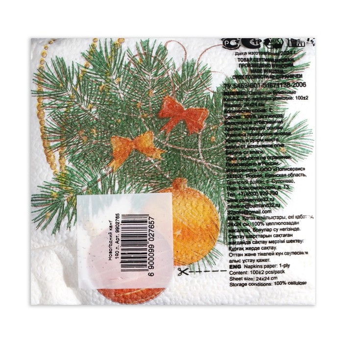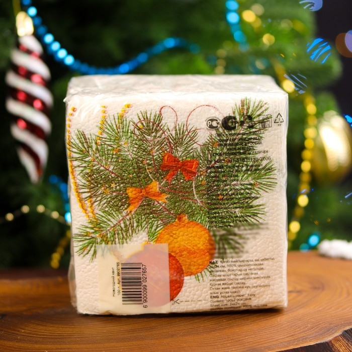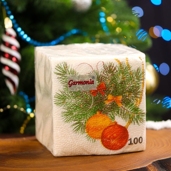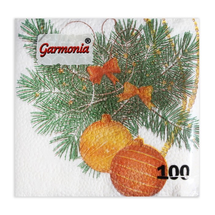 Новогодние салфетки бумажные Гармония цвета «Новогодний кант» 1 слой, 24х24, 100 шт.