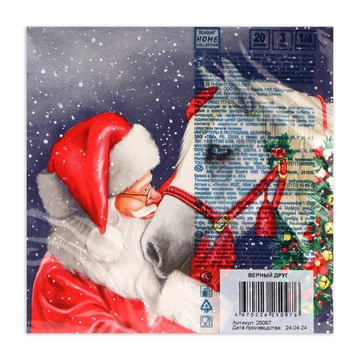 Новогодние салфетки бумажные Home Collection «Верный друг», 3 слоя, 33х33 см, 20 шт