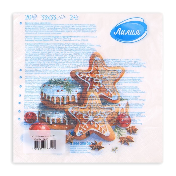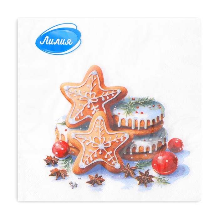 Новогодние салфетки бумажные Лилия «Медовые пряники», 2 слоя, 33х33 см, 20 шт